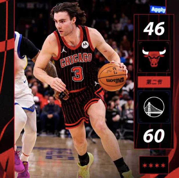 北京时间12月8日,NBA常规赛继续展开,勇士背靠背客场挑战公牛。本场比赛巴特勒迎来复出,上来勇士外线率先开张,早早占据场上主动,公牛进攻状态不佳,很快就陷入被动局面,首节25-38落后;次节公牛有所复苏,成功将分差迫近一些,可随后勇士又连续拿分,再次拉开分差,半场以60-46领先公牛。