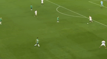 这一次也是一样的道理,施洛特贝克的直塞球找到中锋沃尔特马德,这一脚传球恰好穿透了北爱尔兰的高位逼抢。