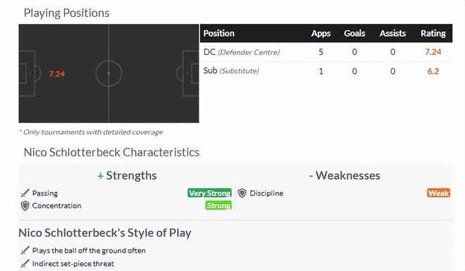 施洛特贝克作为一名左脚中卫,他的出球特点是既可以带球中送直塞,又能过顶球直接找锋线。这一点,就比大多数出球中卫来得更加全面。