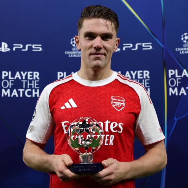 官方:哲凯赖什当选阿森纳4-0马竞一役全场最佳球员